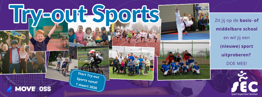 Zit jij op de basis of middelbare school in de gemeente Oss en wil je een sport uitproberen? Doe mee met Try-out Sports! Vanaf 1 maart 2026 starten de lessen. Je kunt kiezen uit veel leuke proeflessen bij